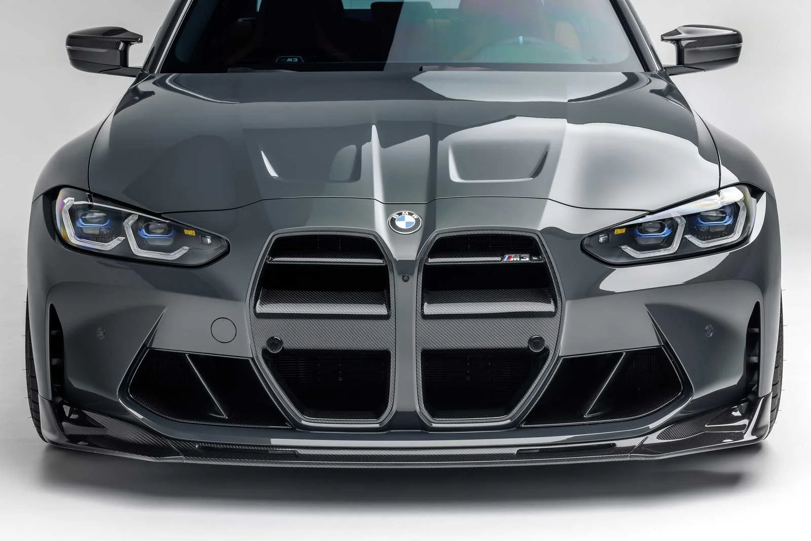 BMW G80 M3 and G82 M4 grill from Vorsteiner VRS in full carbon or ABS. The Vorsteiner grill for the BMW G80 M3 and G82 M4 completely changes the look of the new controversial BMW Kidney grill. The Vorsteiner grill adds an aggressive and classic BMW look to the frontbumper. The existing lines are emphasized while adding some much needed carbon fiber.